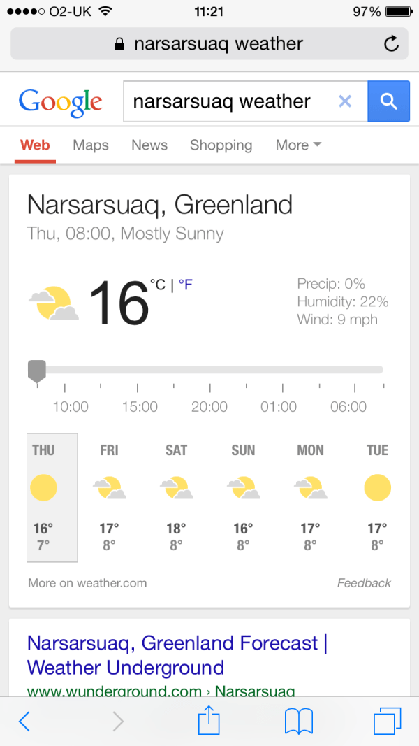 Ok I’ll stop posting about the weather soon, but I was shocked to learn that Southern Greenland appears to be