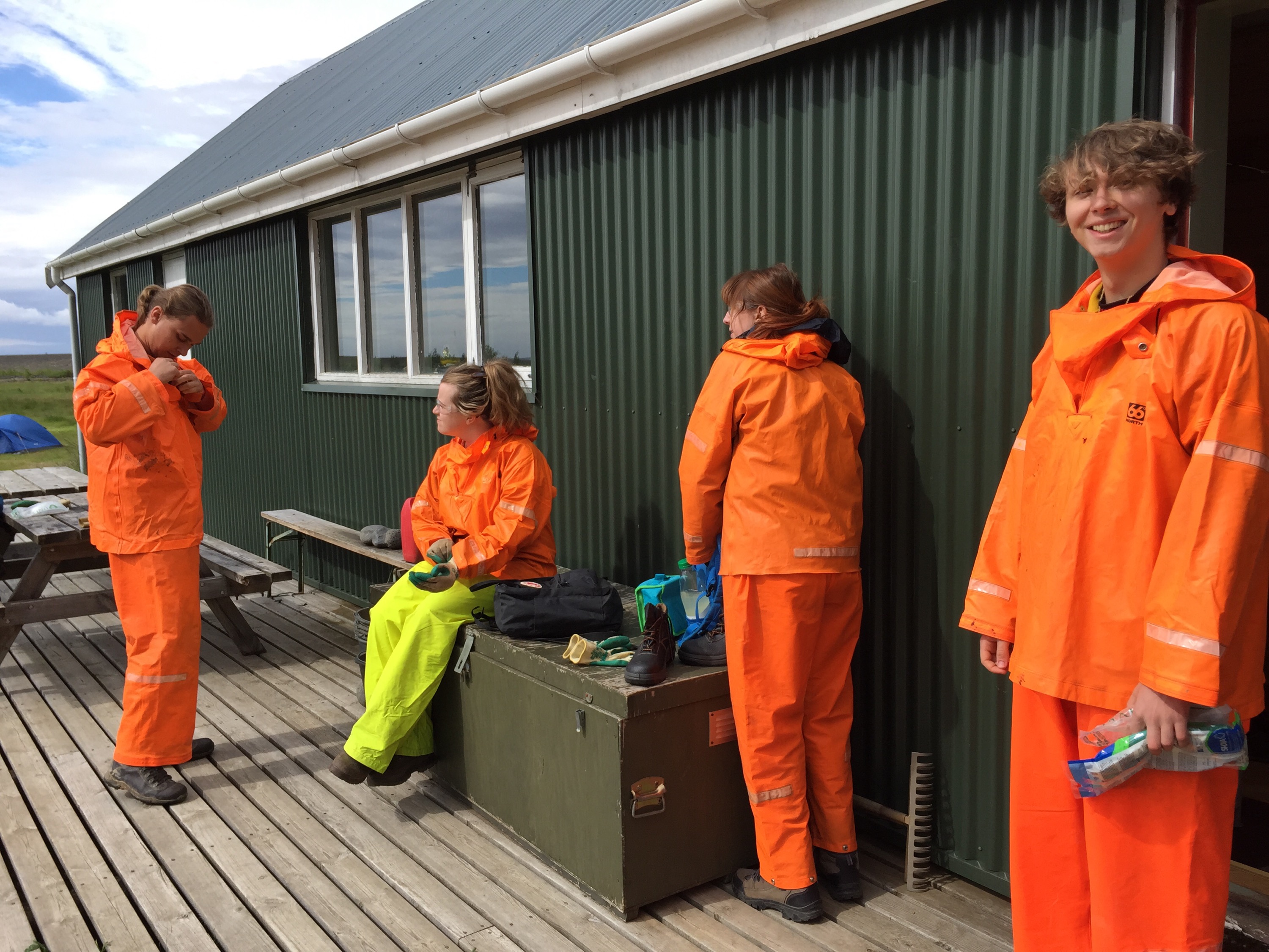 As you can see we’re all rocking the fluorescent gear of fisherfolk in our 66 degrees north oilskins.
