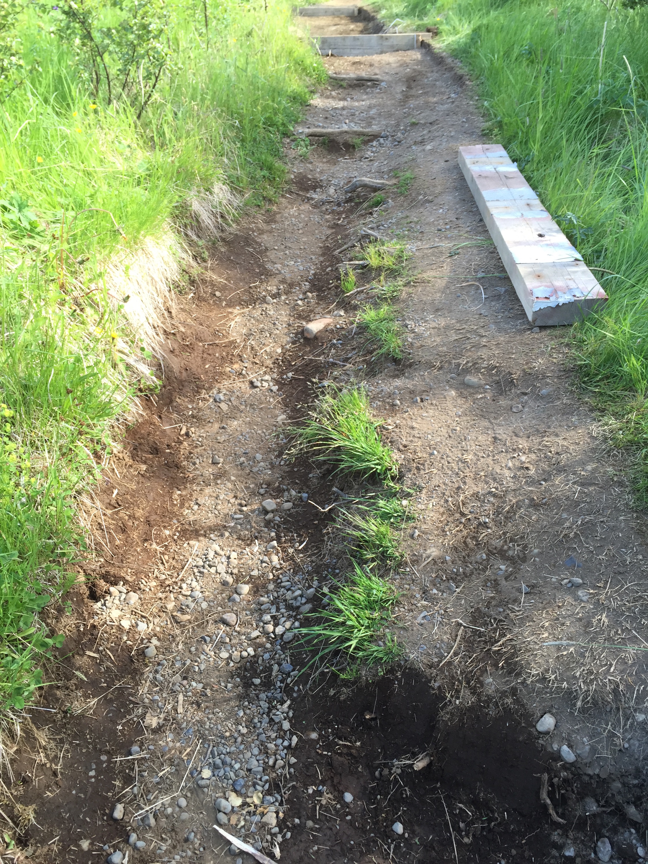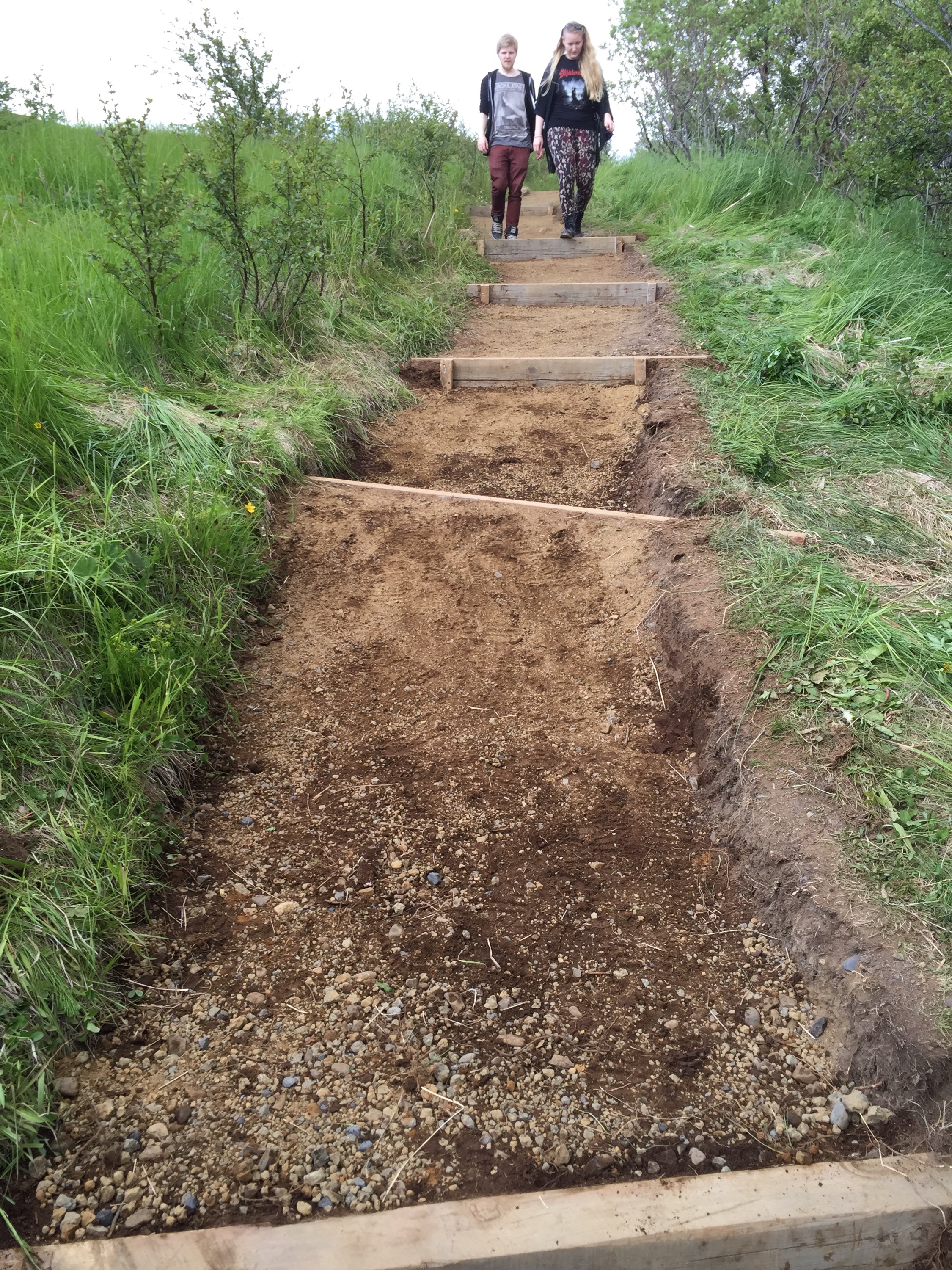 The main aim of much of the conservation work we’ve been doing over the last 2 weeks has been surface improvement on the main hiking trails of the Skaftafell part of Vatnajökull National Park. Here are some before and after shots…