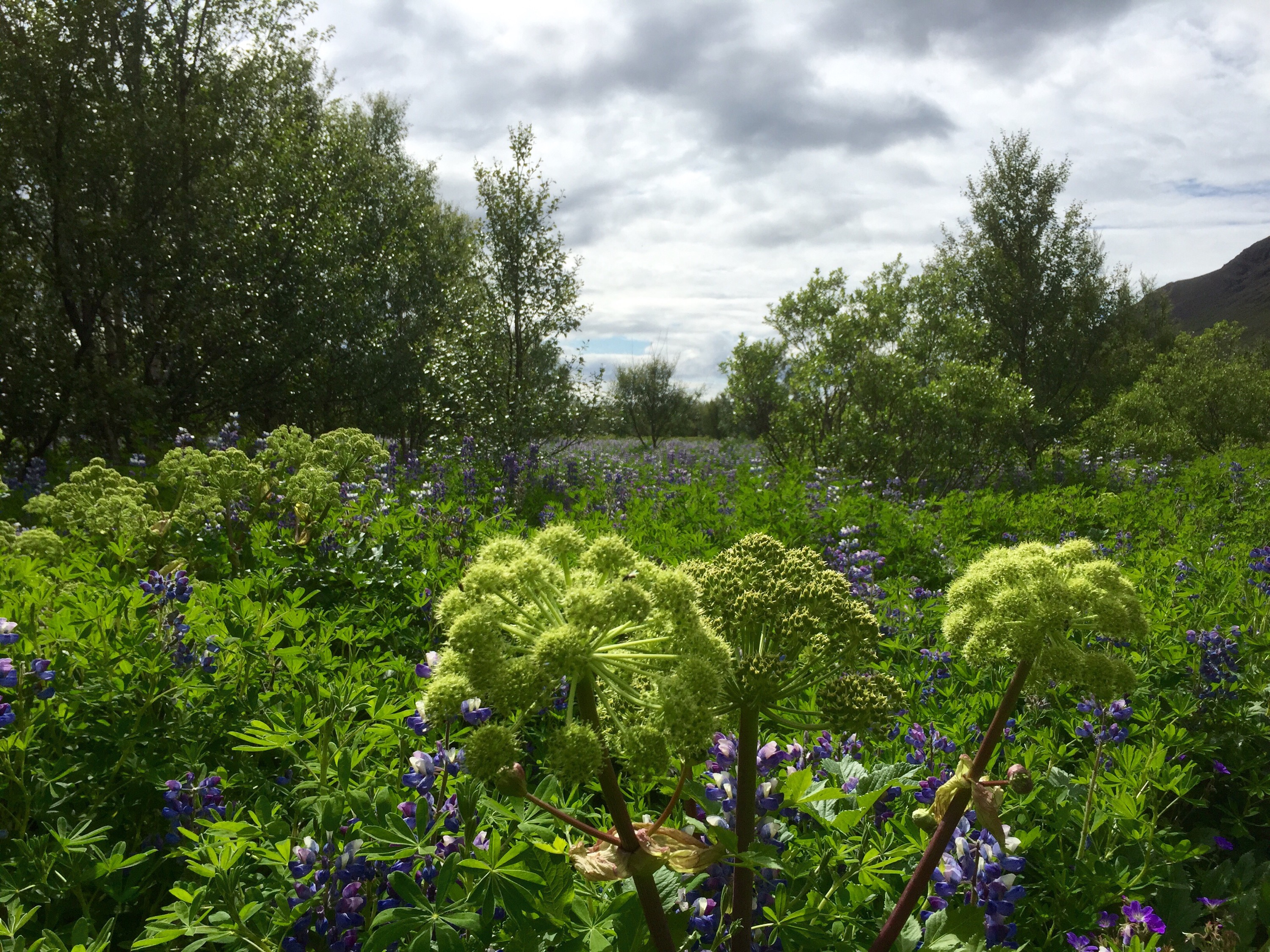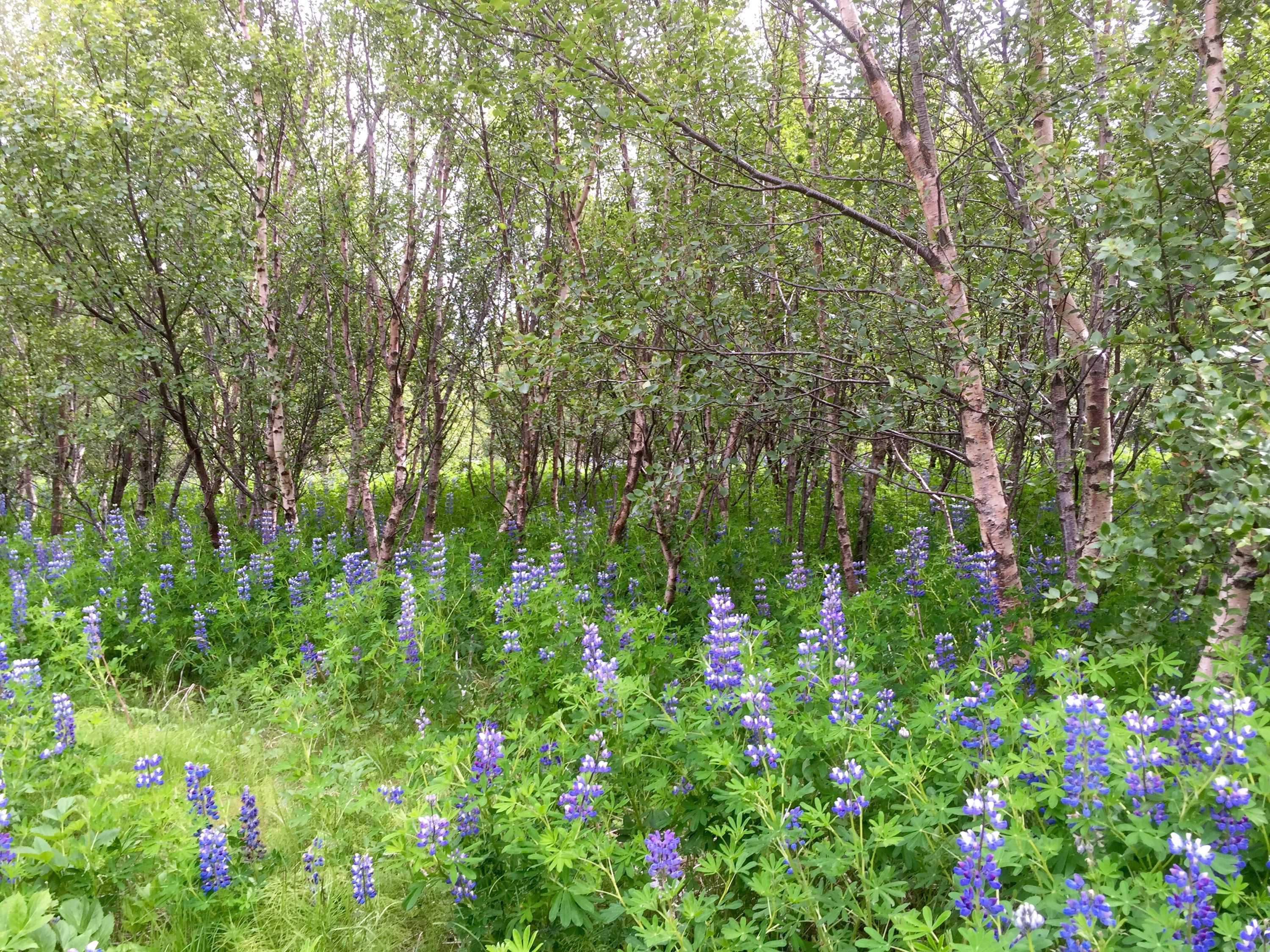 Lovely lupins and birch trees Lovely lupins behind angelicaIceland in bloom Morsárdalur