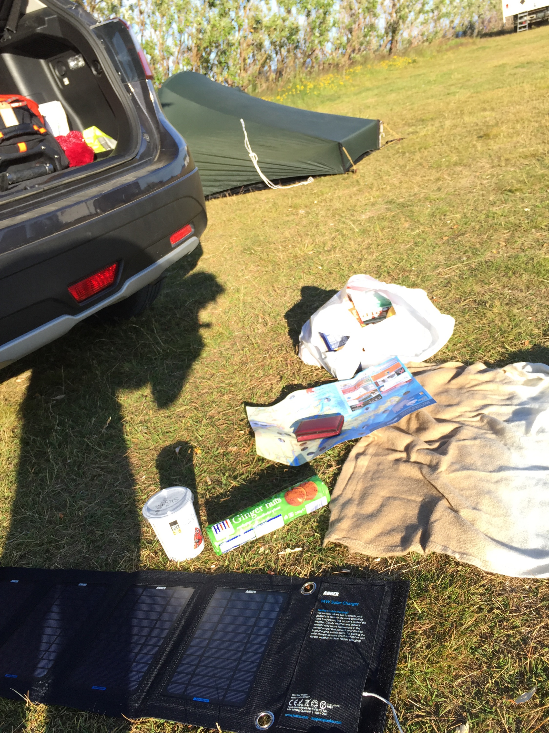 My solar charger, it does not seem to be working, hmmm, perhaps I should have tested it before coming! Still, I’ve got Skyr and gingernuts, what more could a girl want? For the none English folk, before your imaginations run wild, gingernuts are a type of very gingery hard biscuit (cookie), delicious.
